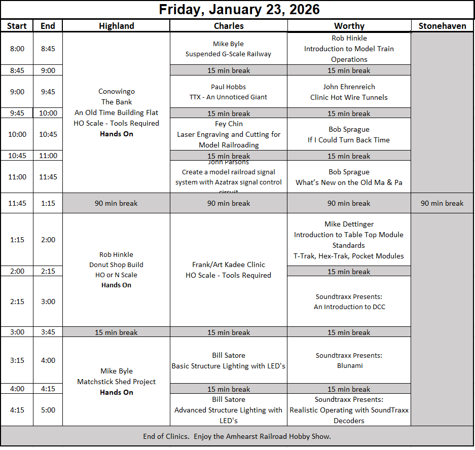 Plus, we package our clinics for maximum value. You get all the clinics you can handle, breakfast and lunch, and a two-day ticket to the Railroad Hobby Show, all for one reasonable price.
